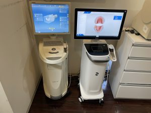 10年以上使っていたセレックブルーカムを最新のセレックプライムスキャンに入れ替えました。左側が旧モデル、右側が今回導入した最新モデルです。今までのブルーカムではスキャナで静止画を取り込んで、つなぎ合わせてバーチャル模型を作っていましたが、プライムスキャンでは動画をフルカラーで取り込みます。PCの処理能力の向上、光学カメラの性能アップにより進化したCAD/CANシステムが完成しました。このことにより、ワンデートリートメントも可能になり、より精度・審美性の高いかぶせ物が作製できます。また、型を取る材料や模型を作る石膏も不要になり、患者さんにとっても歯科医院にとっても地球環境にとっても(壮大ですが・・・)メリット大です!!